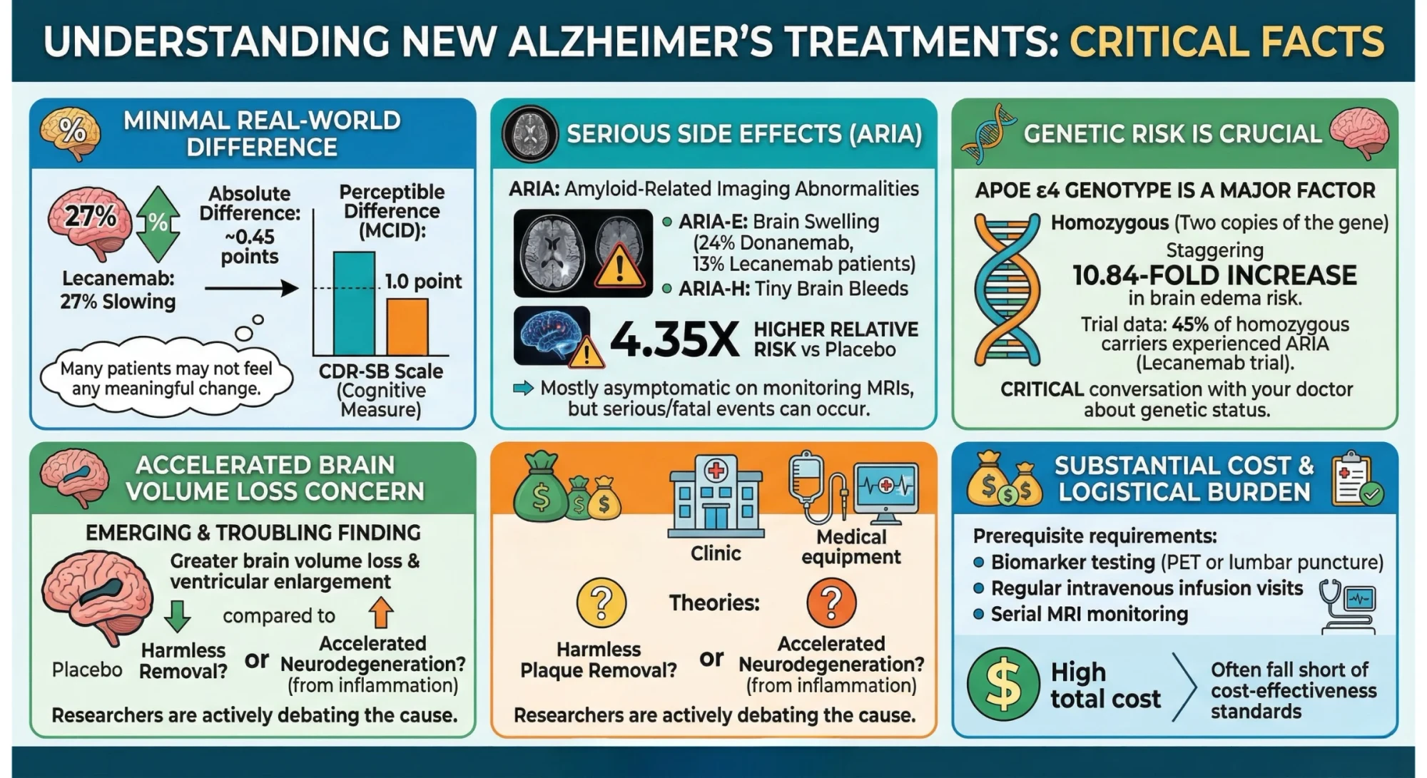 To summarize: monoclonal antibodies are a genuine scientific achievement that slows disease progression for some patients. But they do not cure Alzheimer's, they do not reverse cognitive decline, and they carry real and serious risks. For many patients, particularly those with APOE ε4 variants or more advanced disease, the risk-benefit calculation is genuinely complicated.